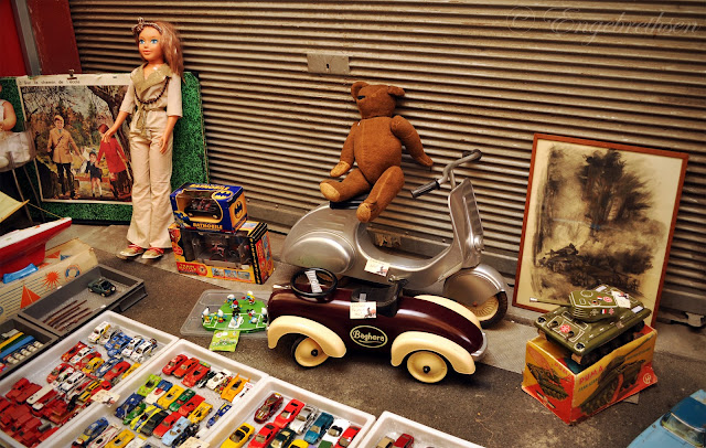 Varje lördag, söndag och måndag samlas antikhandlare på världens största antikmarknad vid Porte de Clignancourt. Det gäller att hålla hårt i väskan medan man tar sig förbi de vanliga marknadsstånden för att komma fram till det stora området med antikviteter. Innan dess är det trångt, högt tempo och den som är turist syns på långa vägar.. Men väl bland antikprylarna sänks tempot och man kan strosa utan att vara rädd för påstridiga försäljare. Pappa Antikhandlare och jag summerade dock ganska snart att priserna var lite väl höga för att vi skulle göra några bättre affärer. Jag hittade dock några assnygga skomakarlampor och andra industrilampor som jag vet att jag och J hade släpat med oss hem, om bara prislappen sett annorlunda ut och om vi hade haft en container väntandes på oss vid stranden i Normandie, redo att skeppa hem allt. Åh, himmelskt fina var dom.