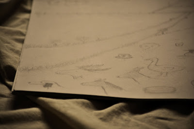 Längst bak i blocket finns det några tomma sidor kvar. Jag fortsätter att skissa på dom, inte alls samma figurer som morfar gjorde, utan mina egna. På något sätt känns det så givet att fortsätta där han slutade.