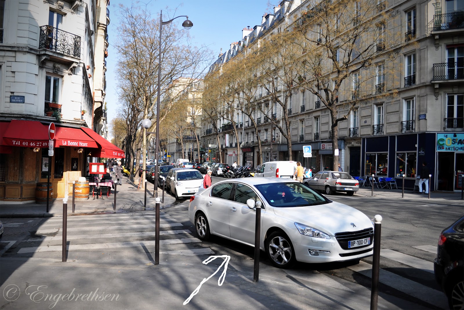 Jag måste visa en jätterolig sak. Om någon i största allmänhet går och oroar sig för att inte hitta parkering i Paris, så kan jag trösta med att det är lugna puckar. Man kan parkera var man vill.
