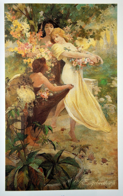 Jag vet inte var den finns, men målningen är så vacker att jag kan försvinna i den hur länge som helst. Färgerna, det mjuka i varje linje, känslan.. Ingen typisk Mucha-målning men så, så vacker..