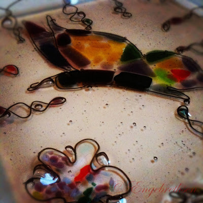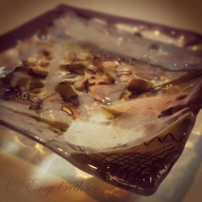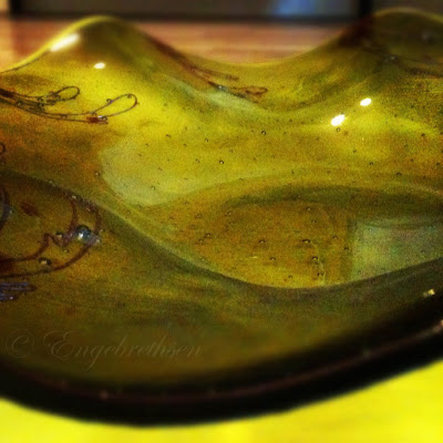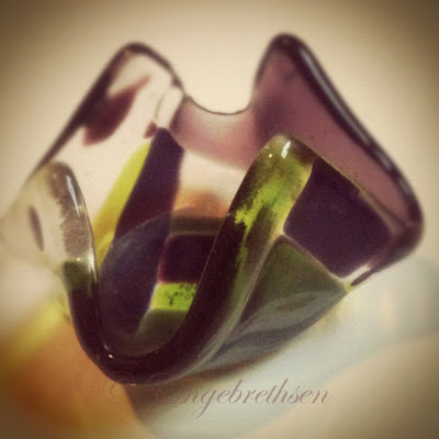 Jag hittade några glasföremål hemma som jag inte tror ligger uppe på hemsidan. Några gör det men inte alla. När jag blir stor (har jobb och inkomst) ska jag ta upp glastillverkningen igen för det är så jäkla kul. Det går att göra hur mycket som helst. Med dessa föremål här nedan handlade allt om att experimentera och lära sig materialet, vilket slutade med att jag hade både ståltråd, tyg och folie blandat med allt glas.