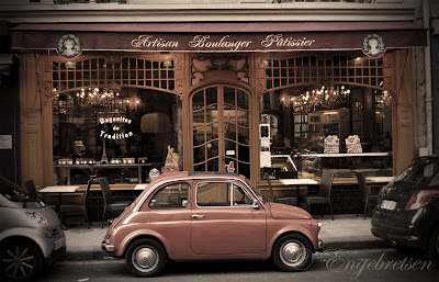 Vi drack café crème på Avenue de la Bourdonnais, på ett inhemskt och slitet litet café. Gata efter gata, café efter café tar vi oss an Paris.